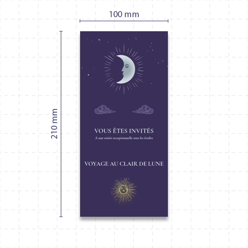 Optez pour des cartes d'invitation personnalisées au format portrait 21 x 10 cm, parfaites pour des événements formels ou créatifs. Ce format vertical est idéal pour des designs élégants et modernes. Il convient parfaitement aux invitations de mariage, baptême ou événements d'entreprise. Personnalisez-le avec des finitions comme le pelliculage mat, brillant ou soft touch pour un effet luxueux. Ajoutez une dorure subtile en or, argent ou holographique, ou encore un vernis 3D pour un effet tactile et visuel qui impressionnera vos invités.