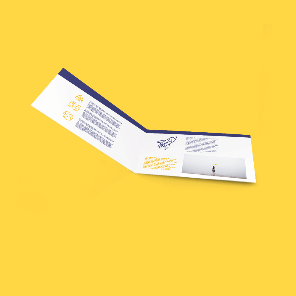 Contrairement à un simple flyer, les dépliants 2 volets s'ouvrent entre les mains de vos lecteurs, offrant une expérience de lecture plus immersive et engageante. Leur format pliable vous donne la flexibilité de présenter des informations détaillées sur vos produits, services, événements ou promotions, de manière plus exhaustive qu'avec un simple flyer.
